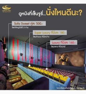 ปรับเปลี่ยนฟังก์ชั่น รูปแบบการขายทันสมัย เจน Z ชอบรวมกลุ่ม รวมก๊วน แต่เบื่อจัดงานที่โรงแรม อยากให้งานของตัวเองไม่เหมือนใคร สถานที่และบริการใหม่นี้จึงเกิดขึ้น เซ็นจูรี่ เปิดให้บริการเช่าโรง เหมารอบ เริ่มต้น 7,800- 19,900 บาท ให้บริการอาหาร-เครื่องดื่มแบบค็อกเทล และเล้าจ์สุดหรูด้านหน้าโรงภาพยนตร์ จุดเด่น จากสถานีรถไฟฟ้า สามารถเดินเข้าสู่งานได้เลย มีกลุ่ม ไม่ว่าจะจัดมิตติ้งศิลปิน รวมเพื่อน งานบริษัท สัมมนา งานแต่ง หรืออยากเซอร์ไพรส์แฟน มาใช้บริการจำนวนมากขึ้นเรื่อยๆ ปัจจุบันตัว FC ซีรี่ส์เกาหลี, จีน, อินเดีย เป็นลูกค้าหลัก สัดส่วนรายได้ เหมาโรง มาถึง 20 เปอร์เซ็นต์