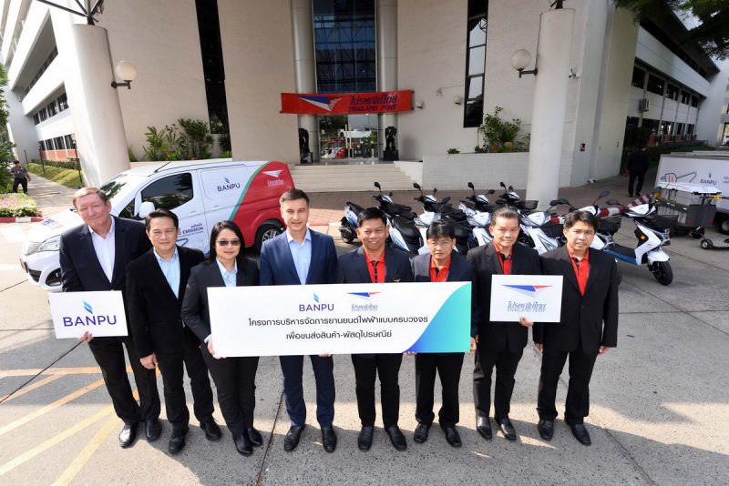 บริษัท ­ไปรษณีย์ไทย จำกัด ร่วมกับบริษัท บ้านปู จำกัด (มหาชน) ผนึกกำลังใน “โครงการบริหารจัดการยานยนต์ไฟฟ้าแบบครบวงจรเพื่อขนส่งสินค้า-พัสดุไปรษณีย์” นำยานยนต์ไฟฟ้าที่ขับเคลื่อนด้วยกำลังไฟฟ้า 100% มาทดลองขนส่งไปรษณีย์ภัณฑ์ในพื้นที่กรุงเทพฯ และปริมณฑลภายใต้แนวคิดระบบขนส่งอย่างยั่งยืน เพื่อลดปัญหาการเกิดมลภาวะทางอากาศ ตั้งเป้านำรถขนส่งไปรษณีย์ภัณฑ์ไฟฟ้าใช้งานกว่า 100 คันภายใน 4 ปี นำประเทศไทยสู่สมาร์ทซิตี้