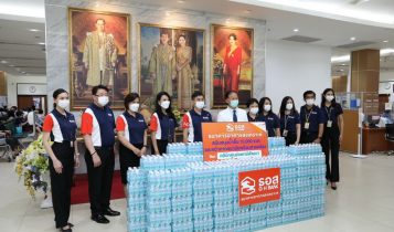 ธอส. สนับสนุนน้ำดื่มธนาคาร 30,000 ขวด พร้อมหน้ากากอนามัยและสายคล้องให้จุดบริการวัคซีน COVID-19 ณ สถานีโทรทัศน์ไทยพีบีเอส และคลินิกศูนย์แพทย์พัฒนา