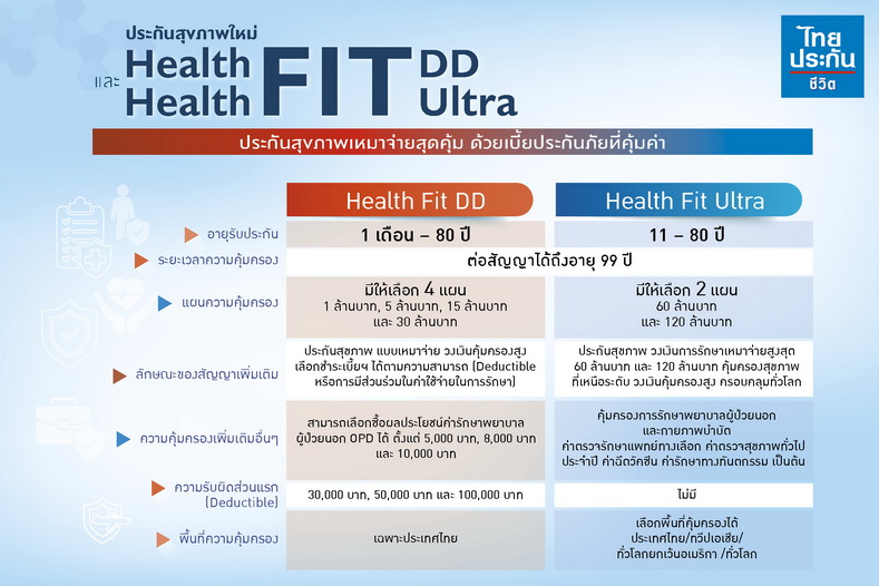 ไทยประกันชีวิต ส่งประกันสุขภาพเหมาจ่ายสุดคุ้ม “Health Fit DD” และ “Health Fit Ultra” ครอบคลุมทั้งผู้ป่วยนอกและผู้ป่วยใน