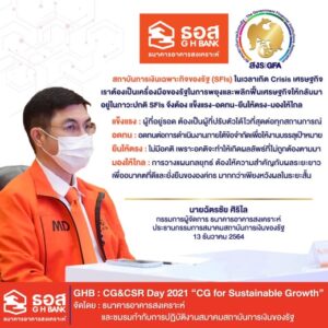 ธอส. ร่วมกับ ชมรมกำกับการปฏิบัติงาน สมาคมสถาบันการเงินของรัฐจัดงาน GHB : CG & CSR Day 2021 “CG for Sustainable Growth”