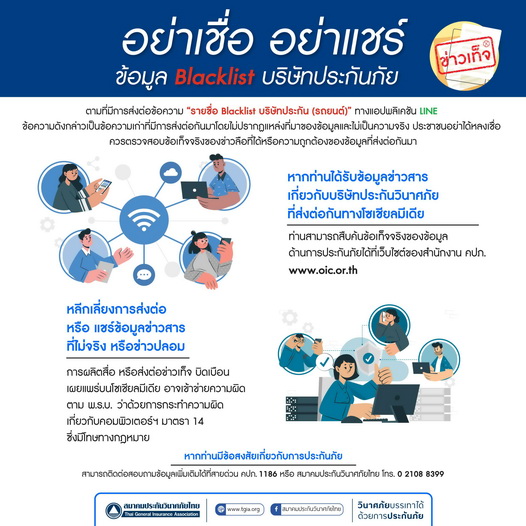 สมาคมประกันวินาศภัยไทย ขอย้ำอย่าแชร์ “รายชื่อ Blacklist บริษัทประกัน (รถยนต์)” ข้อความเท็จกลับมาระบาดในโซเชียล