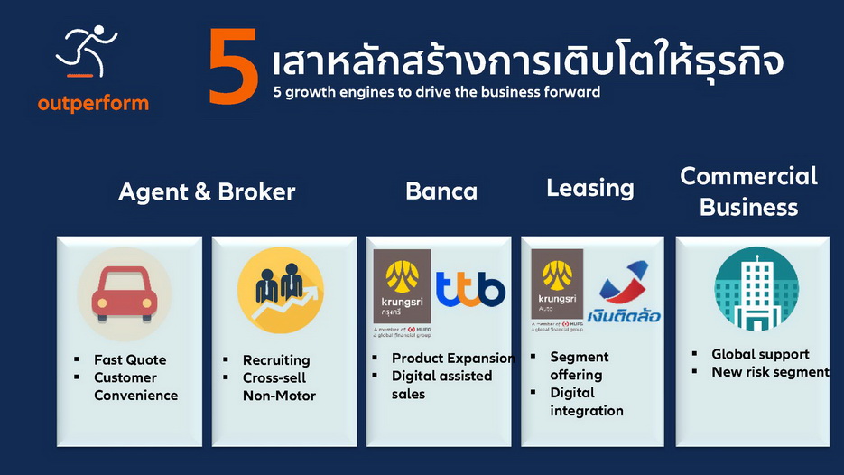 • สร้างการเติบโตในช่องทางตัวแทนและนายหน้า มีเทคโนโลยีที่ช่วยให้การออกใบเสนอราคารวดเร็วมากขึ้น พร้อมอำนวยความสะดวกให้กับลูกค้า