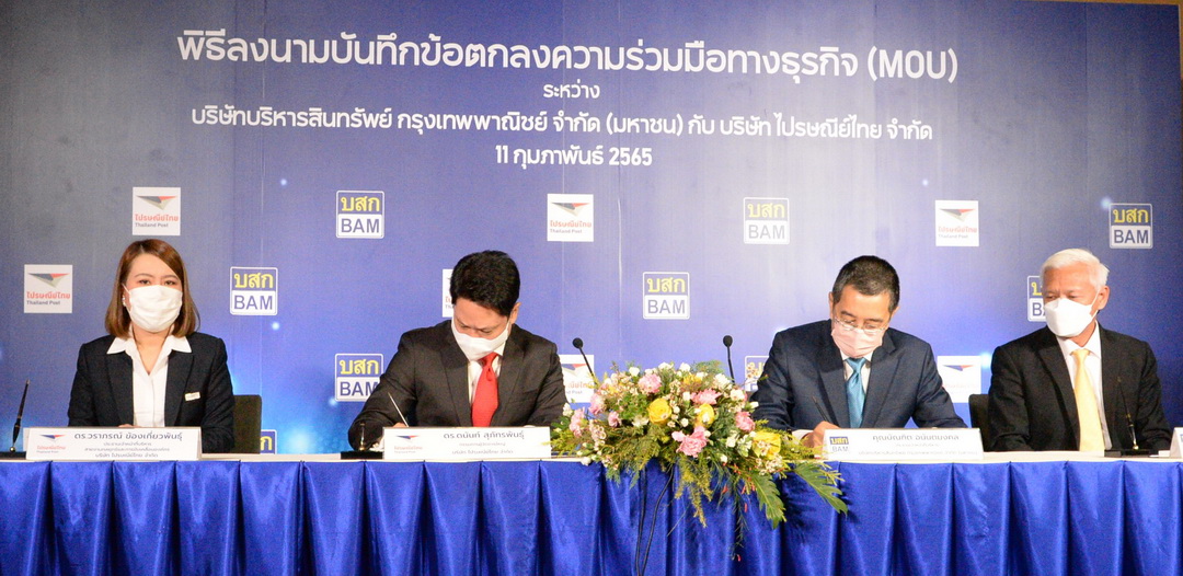 BAM บริษัทบริหารสินทรัพย์ที่มีขนาดใหญ่ที่สุดของประเทศ ผนึกกำลัง บริษัท ไปรษณีย์ไทย จำกัด ผู้ให้บริการไปรษณีย์และโลจิสติกส์ครบวงจร เข้าถึงทุกพื้นที่ทั่วไทย เตรียมให้บริการสำรวจดูแล และตรวจสภาพของทรัพย์สินรอการขายให้กับ BAM ทั่วประเทศ พร้อมสนับสนุนด้านการตลาด การประชาสัมพันธ์ทรัพย์ BAM ผ่านแพลตฟอร์ม และสื่อต่าง ๆ ของไปรษณีย์ไทยที่เข้าถึงกลุ่มลูกค้าเป้าหมาย