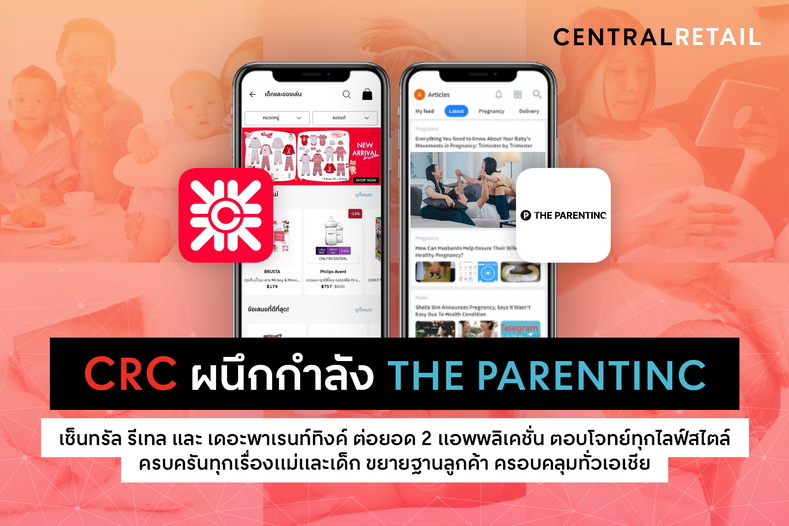 บริษัท เซ็นทรัล รีเทล คอร์ปอเรชั่น จำกัด (มหาชน) หรือ CRC ผู้นำธุรกิจค้าปลีกรายใหญ่ที่สุดในประเทศไทย ผนึกกำลัง เดอะพาเรนท์ทิงค์ (The Parentinc) บริษัทด้านเทคโนโลยีที่มีสำนักงานใหญ่อยู่ที่ประเทศสิงคโปร์ และเป็นบริษัทแม่ของ theAsianparent คอมมูนิตี้แพลตฟอร์มคอนเทนต์สำหรับแม่และเด็กที่ใหญ่ที่สุดในเอเชียตะวันออกเฉียงใต้ เดินหน้ายกระดับด้านบริการ เสริมแกร่งพอร์ตสินค้ากลุ่มแม่และเด็กของเซ็นทรัล รีเทล และความเป็นผู้นำตลาดของเดอะพาเรนท์ทิงค์ ในประเทศไทย ผ่านการขยายขอบข่ายธุรกิจและสร้างการเติบโตทั้งในแพลตฟอร์มออนไลน์และออฟไลน์สอดรับแผนธุรกิจแบบ Omni-Centric Retailer