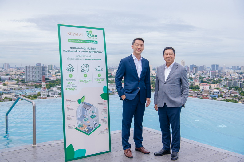 นอกจากนี้ จากการเลือกใช้สินค้าที่ได้รับการรับรองฉลาก “SCG Green Choice”  ยังมีส่วนช่วยลดการปล่อยก๊าซเรือนกระจกจากกระบวนการผลิตวัสดุ 564 ตัน เทียบเท่าปริมาณการดูดซับคาร์บอนไดออกไซด์ของต้นไม้ 47,000 ต้นภายใน 1 ปี ด้วยการใช้วัสดุคอนกรีตรักษ์โลก ซีแพค อิฐมวลเบา คิวคอน และไม้เชิงชาย เอสซีจี ขณะที่กระเบื้องปูพื้นและบุผนัง เซรามิก กระเบื้องเกรซพอสเลน กระเบื้องโมเสก คอตโต้ ช่วยประหยัดน้ำจากการผลิตวัสดุ 7,650,132 ลิตร อีกทั้งฉนวนกันความร้อน เอสซีจี ทดแทนการใช้ทรายธรรมชาติ กระเบื้องหลังคาคอนกรีต เอสซีจี รุ่นซีแพค ทดแทนการใช้ปูนซีเมนต์ โครงหลังคาสำเร็จรูป เอสซีจี ประหยัดการใช้เหล็ก ทั้งนี้การใช้วัสดุต่างๆ ดังกล่าวจะขึ้นอยู่กับการใช้งานของแต่ละโครงการของศุภาลัย