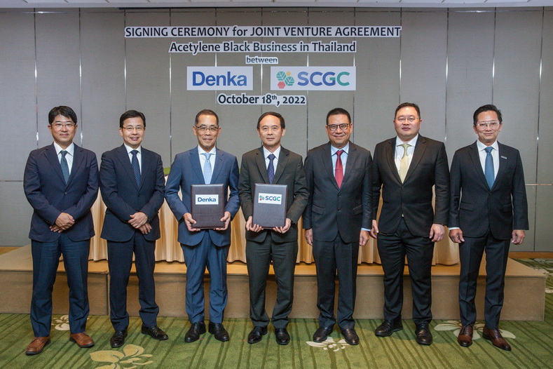 ทั้งนี้ อะเซทิลีนแบล็กของ Denka เป็นผลิตภัณฑ์คาร์บอนแบล็กชนิดพิเศษที่เป็นวัสดุนำไฟฟ้า มีคุณสมบัติที่มีความบริสุทธิ์และการนำไฟฟ้าสูง ส่วนใหญ่จะใช้เป็นส่วนประกอบในการผลิตแบตเตอรี่ลิเธียมไอออนแบบชาร์จไฟได้สำหรับยานยนต์ไฟฟ้า (EV) เป็นหลัก รวมถึงสามารถนำไปใช้เป็นวัสดุสำหรับผลิตสายส่งไฟฟ้าแรงสูงเพื่อผลิตไฟฟ้าจากพลังงานลมนอกชายฝั่ง ซึ่งการร่วมทุนดังกล่าวจะช่วยขับเคลื่อนกลยุทธ์การดำเนินธุรกิจของ SCGC ที่มุ่งผลิตสินค้าที่มีมูลค่าเพิ่มสูงหรือ HVA (High Value-Added Products & Service) เพื่อรองรับเมกะเทรนด์ด้านยานยนต์ไฟฟ้าที่มีแนวโน้มความต้องการของตลาดเพิ่มสูงขึ้น ตอบโจทย์ความต้องการของผู้บริโภค สัญญาร่วมทุนดังกล่าวลงนามโดย นายธนวงษ์ อารีรัชชกุล ประธานเจ้าหน้าที่บริหารและกรรมการผู้จัดการใหญ่ SCGC และ นายโทชิโอะ อิมาอิ ประธานเจ้าหน้าที่บริหารและกรรมการผู้จัดการ บริษัท Denka Company Limited โดยได้รับเกียรติจากคุณรุ่งโรจน์ รังสิโยภาส กรรมการผู้จัดการใหญ่ เอสซีจี ร่วมเป็นสักขีพยาน ซึ่งการร่วมทุนครั้งนี้ SCGC จะถือหุ้นร้อยละ 40 ส่วนที่เหลือจำนวนร้อยละ 60 จะถือหุ้นโดย Denka