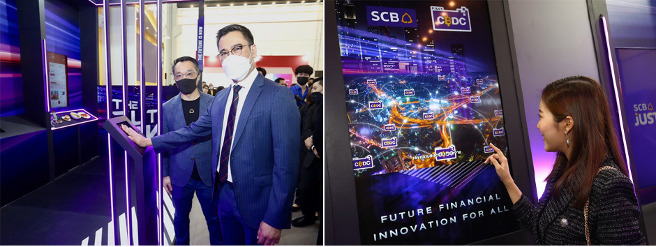 ซึ่งธนาคารไทยพาณิชย์ ได้รับการคัดเลือกจาก ธนาคารแห่งประเทศไทย (ธปท.) เป็นหนึ่งในผู้ร่วมทดสอบการพัฒนา Retail CBDC เพื่อวางโครงสร้างพื้นฐานด้านนวัตกรรมการเงินแห่งโลกอนาคตให้กับประเทศไทย ช่วยเพิ่มโอกาสและขีดความสามารถในการแข่งขันแก่ภาคธุรกิจ พร้อมผลิตภัณฑ์ และโซลูชันทางการเงินที่ตอบโจทย์ผู้บริโภคยุคใหม่ อาทิ “JUST4U” บริการสรุปค่าใช้จ่ายรายเดือนเฉพาะตัวบนแอปฯ SCB EASY “SPRING UP” (สปริงอัพ) ดิจิทัลแพลตฟอร์มเพื่อสุขภาพแบบครบวงจร และ “สินเชื่อมณีทันใจ” สินเชื่อเพื่อธุรกิจ สำหรับผู้ประกอบการ มุ่งหวังให้ผู้เข้าชมงานได้สัมผัสนวัตกรรมการเงินแห่งอนาคตที่เข้ามามีบทบาทสำคัญต่อวิถีชีวิตของคนยุคดิจิทัล