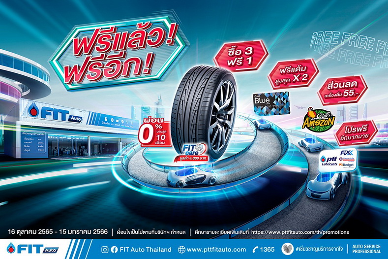 พบกับโปรโมชัน ฟรีแล้ว! ฟรีอีก! ปรากฏการณ์โปรโมชันครั้งยิ่งใหญ่สุดแรงแห่งปี พร้อมแล้วติดเครื่องยนต์รีบไปฟิตรถกันเลยที่ ศูนย์บริการยานยนต์ FIT Auto ตั้งแต่วันที่ 16 ตุลาคม 2565 – 15 มกราคม 2566 ทุกสาขาทั่วประเทศ สามารถค้นหาสาขา FIT Auto ได้ที่ https://www.pttfitauto.com/th/branch หรือสอบถามเพิ่มเติม Contact Center โทร. 1365 กด 17