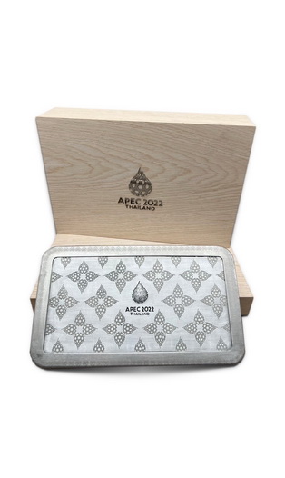 โดยชุดของขวัญทั้งหมดถูกบรรจงบรรจุในกล่องที่ทำจากไม้ยางพารารีไซเคิลด้านในบุด้วยผ้าสักหลาดสีทองแชมเปญ ฝากล่องติดโลหะสีเงินตัดฉลุลายตราสัญลักษณ์ APEC 2022