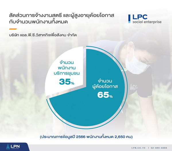นางสุรัสวสดี ซื่อวาจา กรรมการผู้จัดการ บริษัท แอล. พี. ซี. วิสาหกิจเพื่อสังคม จำกัด (LPC) บริษัทวิสาหกิจเพื่อสังคมในเครือบริษัท แอล. พี. เอ็น. ดีเวลลอปเมนท์ จำกัด(มหาชน) ที่ให้บริการด้านความสะอาดในพื้นที่อาคารทั้งอาคารสำนักงานและอาคารชุดพักอาศัย รวมถึงงานบริการด้านอื่นๆ กล่าวถึงแผนงานในการขับเคลื่อนองค์กรในฐานะที่เป็นวิสาหกิจเพื่อสังคมที่ให้ความสำคัญกับการพัฒนาคุณภาพชีวิตและความมั่นคงด้านรายได้ให้กับสตรีและผู้สูงอายุด้อยโอกาสในสังคม ในปี 2566-2568 ว่า ในฐานะที่บริษัทเป็นวิสาหกิจเพื่อสังคมเป้าหมายสำคัญในการขับเคลื่อนองค์กรคือการสร้างคุณภาพชีวิตและความมั่นคงด้านรายได้ให้กับพนักงานที่เป็นสตรีและผู้สูงอายุที่ด้อยโอกาสในสังคม บริษัทมีแผนที่จะพัฒนาบุคคลากรให้มีคุณภาพในการให้บริการดูแลทำความสะอาดทั้งในพื้นที่อาคารสำนักงาน อาคารเชิงพาณิชย์ ที่พักอาศัย และในชุมชน ให้เป็นไปตามมาตรฐานสากล พร้อมกับขยายเครือข่ายการให้บริการออกไปจากการให้บริการโครงการภายใต้การบริหารจัดการของบริษัท แอล.พี. เอ็น. ดีเวลลอปเมนท์ จำกัด(มหาชน) เพื่อที่จะสร้างเครือข่ายและพัฒนาสตรีและผู้สูงอายุที่ด้อยโอกาสในสังคม ได้มีโอกาสในการทำงานและสร้างรายได้ที่มั่นคงอยางยั่งยืน
