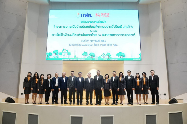 กฟผ. จับมือ ธอส. ส่งเสริมบ้านประหยัดพลังงาน ให้คำปรึกษาการสร้างบ้านเบอร์ 5 ตรวจประเมินแบบบ้าน พร้อมมอบบริการทางการเงินพิเศษ “โครงการบ้านอยู่เย็นเป็นสุข” แก่ผู้ประกอบการที่อยู่อาศัยและประชาชนทั่วไปที่ซื้อหรือสร้างบ้านเบอร์ 5 หวังช่วยลดค่าใช้จ่าย รักษาสิ่งแวดล้อม ร่วมขับเคลื่อนประเทศสู่สังคมคาร์บอนต่ำอย่างยั่งยืน