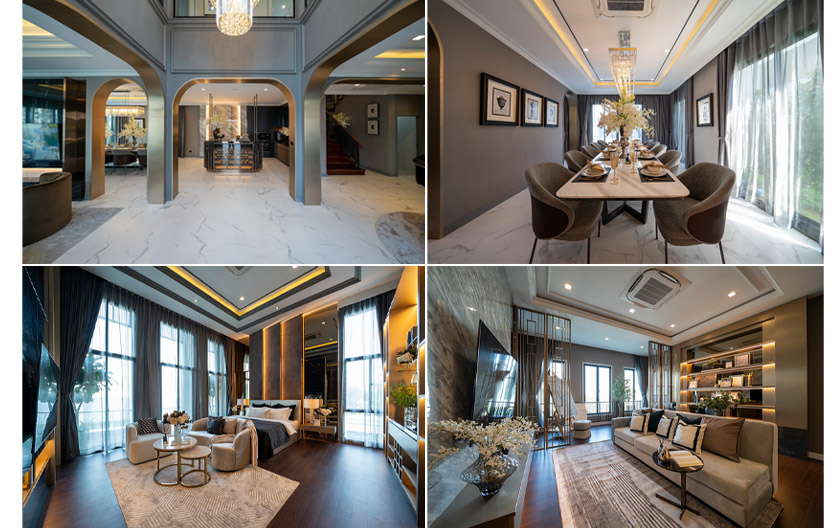• แบบ CORINTHIAN พื้นที่ใชสอย 514 ตารางเมตร มี 4 ห้องนอน, 5 ห้องน้ำ, 2 ห้องรับแขก, 1 ห้องครัว, Foyer (Double Volume) 1 ห้องรับประทานอาหาร, 1 ห้องพักผ่อนด้านบน, 1 Maid Plaza, และ 4 ที่จอดรถ