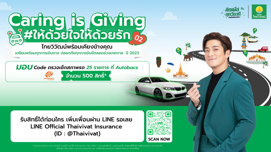 ประกันภัยไทยวิวัฒน์ จัดโครงการ “Caring is Giving  #ให้ด้วยใจให้ด้วยรัก ปี 2″ พร้อมส่งมอบสิ่งดีๆคืนสู่สังคม รณรงค์ขับขี่ปลอดภัย ลดความเสี่ยง ส่งเสริมให้ประชาชนเตรียมความพร้อมก่อนการเดินทางช่วงเทศกาลวันหยุดยาวปี 2566 มอบสิทธิ์ใช้บริการตรวจเช็กสภาพรถยนต์ จำนวน 500 สิทธิ์* หวังลดอุบัติเหตุในระยะยาวแบบยั่งยืน