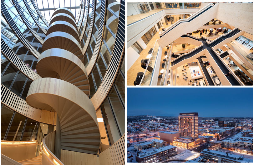 ไม่เพียงความก้าวหน้าในเชิงวิศวกรรมที่สวีเดนเรียนรู้และพัฒนามาอย่างต่อเนื่องกับงานไม้ จากที่เคยติดข้อห้ามก่อสร้างอาคารไม้สูงเกิน 2 ชั้น เมื่อมีการปลดล็อคกฎหมายนี้เปิดกว้างให้กับการพัฒนาเพิ่มประสิทธิภาพของการใช้ไม้เพื่อประโยชน์ในเชิงก่อสร้างและการออกแบบสถาปัตยกรรมอย่างไร้ขีดจำกัด ส่งผลให้มีอาคารขนาดใหญ่ที่สร้างจากไม้เพิ่มมากขึ้น เช่น Ekogen โครงการพัฒนาที่ประกอบด้วยแฟลตให้เช่า 75 ห้อง และยังมีที่กำลังพัฒนาอีกรวมกว่า 500 ห้อง นอกจากนี้ยังมีศูนย์วัฒนธรรม Sara ที่สร้างขึ้นใจกลางกรุง Skelleftea ทางตอนเหนือของสวีเดน มีโรงละคร 2 แห่ง มีศูนย์ศิลปะ ห้องสมุด และพื้นที่สาธารณะเพื่อให้ผู้คนเข้ามาพบปะแลกเปลี่ยนความคิด