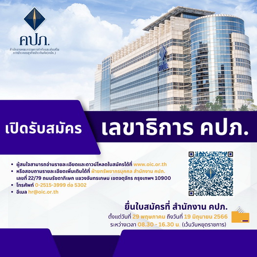 คปภ. เปิดรับสมัคร เลขาธิการ คปภ.