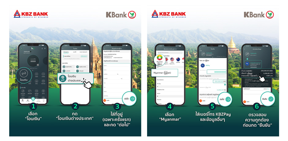 กสิกรไทย จับมือ KBZ Bank ธนาคารเอกชนอันดับ 1 ของเมียนมา เปิดบริการโอนเงินจ๊าดผ่าน K PLUS ให้ชาวเมียนมาในไทยกว่า 2 ล้านรายโอนเงินกลับประเทศได้ง่ายและเร็ว