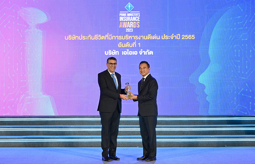 เอไอเอ ประเทศไทย นำโดย นายนิคฮิล แอดวานี ประธานเจ้าหน้าที่บริหาร และนายโยฮัน ดีทอย ประธานเจ้าหน้าที่ฝ่ายการลงทุน รับรางวัล ‘บริษัทประกันชีวิตที่มีการบริหารงานดีเด่น ประจำปี 2565’ อันดับที่ 1 พร้อมควบอีกหนึ่งรางวัลอันทรงคุณค่า ได้แก่ ‘บริษัทประกันชีวิตที่มีความยั่งยืนดีเด่น ประจำปี 2565’ ติดต่อกันเป็นปีที่ 3 จาก นายกฤษฎา จีนะวิจารณะ รัฐมนตรีช่วยว่าการกระทรวงการคลัง ประธานในพิธี ภายในงานมอบรางวัลประกันภัยดีเด่นครบวงจร ประจำปี 2566 (Prime Minister’s Insurance Awards 2023) ซึ่งจัดโดยสำนักงานคณะกรรมการกำกับและส่งเสริมการประกอบธุรกิจประกันภัย (คปภ.) โดยทั้ง 2 รางวัลถือเป็นความภาคภูมิใจและสะท้อนถึงการบริหารงานที่โดดเด่น มีประสิทธิภาพ และดำเนินงานตามหลักธรรมาภิบาล รวมถึงแสดงให้เห็นว่าเอไอเอ เป็นบริษัทประกันภัยที่ดำเนินธุรกิจอย่างยั่งยืนโดยคำนึงถึงสิ่งแวดล้อม สังคม และบรรษัทภิบาล ตามหลัก ESG (Environmental, Social and Governance) ซึ่งเป็นปรัชญาที่เอไอเอยึดถือในการดำเนินธุรกิจมาตลอด 85 ปี ภายใต้คำมั่นสัญญา ‘Healthier, Longer, Better Lives – เพื่อสุขภาพและชีวิตที่ดีขึ้น’