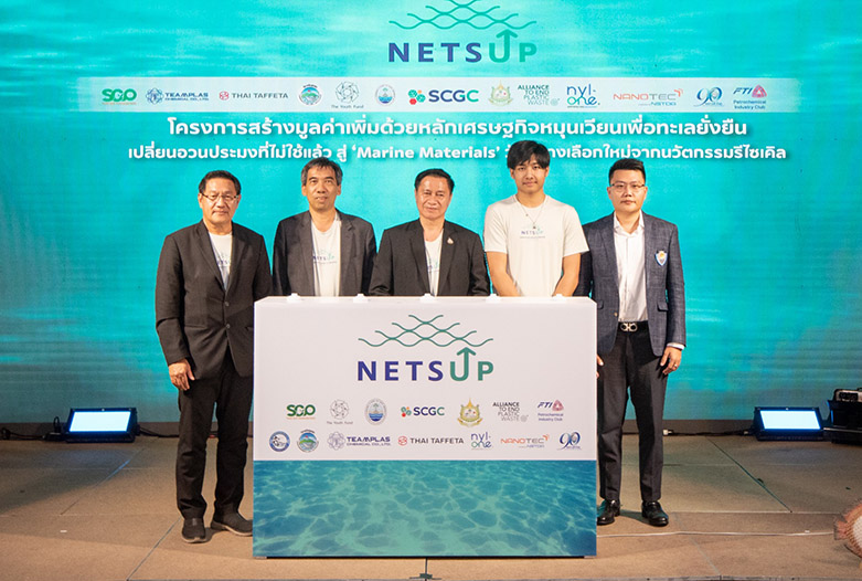SCGC ร่วมกับกระทรวงทรัพย์ฯ และภาคีเครือข่าย เปิดตัวโมเดล Nets Up สร้างมูลค่าเพิ่มด้วยนวัตกรรมเศรษฐกิจหมุนเวียน เปลี่ยนอวนประมงไม่ใช้แล้ว สู่ Marine Materials วัสดุรีไซเคิล ทางเลือกใหม่เพื่อความยั่งยืน