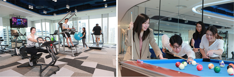- การมุ่งเน้นการสร้างสภาพแวดล้อมที่ดีในการทำงาน: เราได้เริ่มดำเนินนโยบายสร้างความเป็นอยู่ที่ดีแบบองค์รวม เพื่อสุขภาพที่ดีของพนักงาน ประกอบด้วยสิทธิประโยชน์ด้านสุขภาพ เช่น การตรวจสุขภาพทั้งทางด้านร่างกายและจิตใจประจำปี ประกันสุขภาพ ประกันชีวิต และประกันอุบัติเหตุ ความมุ่งมั่นของเราต่อสุขภาพที่ดียังขยายไปถึงสิ่งอำนวยความสะดวกที่สำนักงานของยูโอบี อาทิ ห้องพยาบาล ฟิตเนส ห้องนวด และพื้นที่พักผ่อนหย่อนใจ