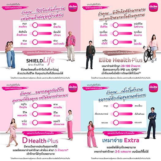 และเพื่อเป็นการตอกย้ำเป้าหมายที่ต้องการให้ประกันชีวิตเข้าถึงทุกกลุ่มเป้าหมายในสังคม ล่าสุด บริษัทฯ จึงได้เปิดตัวแคมเปญ MTL ประกันดีดีที่ใส่ใจ…ทุกความหลากหลาย จากเมืองไทยประกันชีวิต” เพราะ “ทุกคน” มีความเป็นตัวเอง ที่ไม่เหมือนกัน เมืองไทยประกันชีวิต จึงได้ออกแบบแผนประกันสำหรับทุกความต้องการเลือกได้ทั้งแบบประกันที่ดูแลเรื่องความคุ้มครองชีวิต หรือความคุ้มครองสุขภาพที่เลือกได้ในแบบที่เป็นคุณ ไม่ว่าจะเป็น