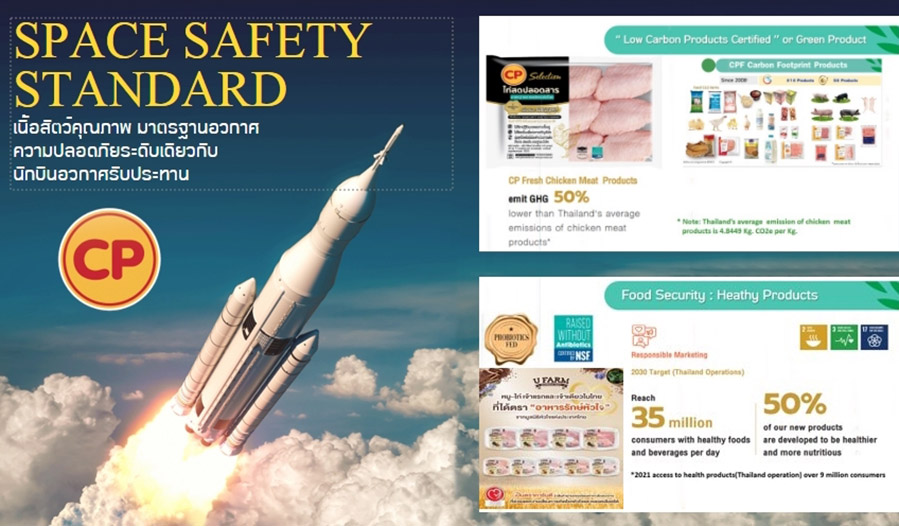 ล่าสุด เนื้อไก่ แบรนด์ซีพี เป็นแบรนด์เนื้อสัตว์ไทยที่ได้รับการรับรองว่ามีมาตรฐานความปลอดภัยระดับอวกาศ (Space Food Safety Standard) ซึ่งเป็นมาตรฐานตามหลักเกณฑ์ความปลอดภัยด้านอาหารขององค์การ NASA