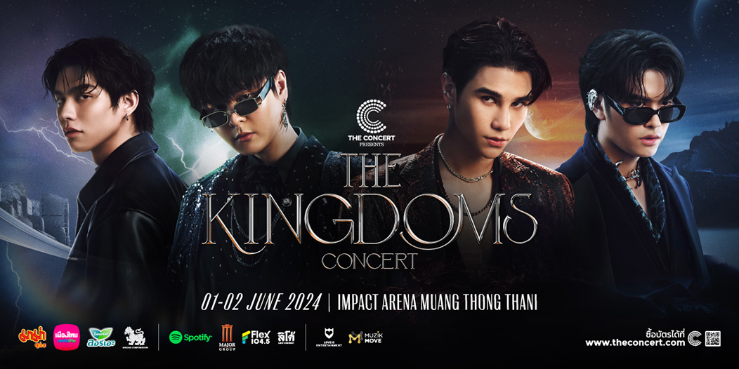 ถือเป็นการรวมตัวกันครั้งแรกของทั้ง “4 คิงส์” ที่พร้อมบวกความเซอร์ไพรส์ในทุก ๆ โชว์ ให้กับแฟนเพลงทุกคน ไม่ว่าจะด้อมไหน เตรียมตัวให้พร้อมแล้วลุยไปกับทุกบทบาทในอาณาจักร “The Concert Application presents The Kingdoms Concert” (เดอะ คอนเสิร์ต แอปพลิเคชัน พรีเซนต์ส เดอะ คิงดอมส์ คอนเสิร์ต) ในวันที่ 1-2 มิถุนายน 2567 ณ อิมแพ็ค อารีน่า เมืองทองธานี เตรียมวอร์มนิ้ว พร้อมเพื่อจองบัตรได้ในวันที่ 30 เมษายน 2567 ทาง The Concert Application หรือ www.theconcert.com เวลา 10:00 น. เป็นต้นไป บัตรราคา 7,000 / 6,500 / 5,500 / 5,000 / 4,500 / 4,000 / 3,000 / 2,500 / 2,000 บาท (บัตรที่นั่งทั้งหมด)