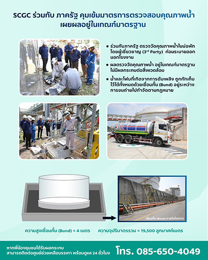 เอสซีจีซี ร่วมกับ ภาครัฐ คุมเข้มมาตรการตรวจสอบคุณภาพน้ำ เผยผลอยู่ในเกณฑ์มาตรฐาน