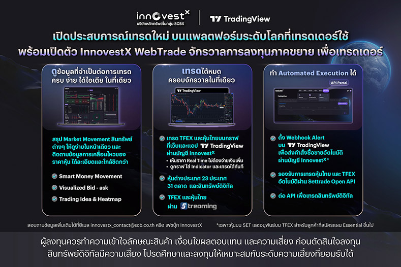 InnovestX ร่วมกับ TradingView เปิดประสบการ์ณ์ครั้งใหม่ เทรด TFEX และหุ้นไทยได้ตรงผ่าน TradingView พร้อมเปิดตัว “InnovestX WebTrade’”