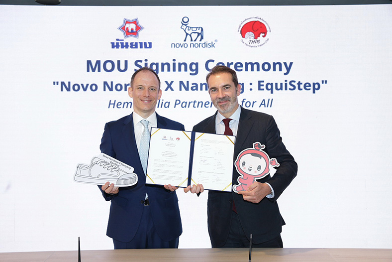 โนโว นอร์ดิสค์ บริษัทชั้นนำด้านเวชภัณฑ์สุขภาพระดับโลก ร่วมกับ นันยาง ผู้ผลิตสินค้ารองเท้าชื่อดังของไทย และชมรมผู้ป่วยโรคเลือดออกง่ายฮีโมฟีเลียแห่งประเทศไทย ร่วมกันประกาศความร่วมมืออันเป็นการบุกเบิกครั้งใหม่ภายใต้โครงการ “EquiStep” โดยความร่วมมือครั้งนี้มีวัตถุประสงค์เพื่อสร้างเสริมความตระหนักรู้เกี่ยวกับโรคฮีโมฟีเลีย ส่งเสริมการเข้าถึงการรักษา และสนับสนุนสังคมที่เปิดกว้างและยอมรับผู้ป่วยโรคเลือดออกง่ายที่พบได้น้อยในประเทศไทยอย่างเท่าเทียม