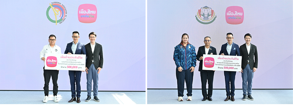 เมืองไทยประกันชีวิตร่วมแสดงความยินดีกับนักกีฬาสมาคมกีฬาเทควันโดแห่งประเทศไทย และสมาคมยกน้ำหนักสมัครเล่นแห่งประเทศไทย ที่ได้เข้าร่วมการแข่งขันโอลิมปิก 2024 พร้อมมอบเงินสนับสนุนพิเศษเพื่อเสริมสร้างขวัญและกำลังใจให้แก่สมาคมและนักกีฬา รวม 2.3 ล้านบาท
