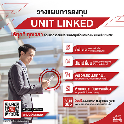 ปัจจุบันลูกค้ามีแนวโน้มการใช้บริการผ่านแอปเราเพิ่มขึ้นอย่างต่อเนื่อง โดยมีอัตราการสมัครใช้บริการเพิ่มขึ้นเป็น 2 เท่า เทียบกับปี 2023 ล่าสุดจากการสำรวจกลุ่มลูกค้าที่มาใช้บริการ พบว่า มีลูกค้าที่สนใจประกันชีวิตควบการลงทุน (ยูนิต ลิงค์) เพิ่มขึ้นอย่างชัดเจน ซึ่งเป็นผลมาจากปัจจัยหลายประการ ได้แก่ มีโอกาสได้รับผลตอบแทนตามความเสี่ยงที่เลือกลงทุน สามารถเลือกและปรับเปลี่ยนได้เองจากกองทุนรวมคุณภาพที่บริษัทฯ คัดสรรมาให้ ผลิตภัณฑ์เหล่านี้ยังตอบสนองเป้าหมายทางการเงินที่หลากหลาย เช่น การเกษียณอายุ การสะสมทุน หรือการวางแผนการศึกษาของบุตรในอนาคตได้อย่างยั่งยืน เป็นต้น ดังนั้น เจนเนอราลี่ ไทยแลนด์ จึงได้เพิ่มฟีเจอร์ใหม่ในแอปพลิเคชัน GEN 365 กับ ฟีเจอร์การสับเปลี่ยนกองทุนยูนิตลิงค์ (Fund Switching) เพื่อให้ลูกค้าสามารถใช้บริการได้สะดวกสบาย ปรับเปลี่ยนกองทุนได้ตามความต้องการ และความเหมาะสมของสถานการณ์ต่าง ๆ ด้วยคอนเซ็ปต์ “ทุกเรื่องง่าย เพียงปลายนิ้ว”