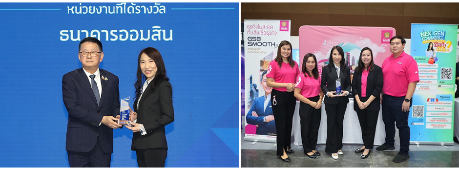 นางรักษยา ศิริบริรักษ์ ผู้ช่วยผู้อำนวยการธนาคารออมสิน สายงานปฏิบัติการธุรกิจ รับโล่ประกาศเกียรติคุณ THAI SME-GP” ในฐานะสถาบันการเงินสนับสนุนเงินทุนสำหรับ SME เพื่อการเป็นคู่ค้ากับภาครัฐ ประจำปีงบประมาณ พ.ศ. 2566 จากนายประเสริฐ จันทรรวงทอง รองนายกรัฐมนตรี และรัฐมนตรีว่าการกระทรวงดิจิทัลเพื่อเศรษฐกิจและสังคม ภายในงาน THAI SME-GP Day 2024 ซึ่งสำนักงานส่งเสริมวิสาหกิจขนาดกลางและขนาดย่อมจัดขึ้น เนื่องด้วยธนาคารออมสินให้ความสำคัญในการสนับสนุน SME ให้เข้าถึงแหล่งเงินทุนในอัตราดอกเบี้ยที่เป็นธรรมอย่างต่อเนื่อง เพื่อช่วยให้ผู้ประกอบการมีเงินทุนเสริมสภาพคล่องในกิจการสามารถดำเนินธุรกิจ และเป็นฟันเฟืองสำคัญในการขับเคลื่อนเศรษฐกิจของประเทศ โอกาสนี้ ธนาคารได้ร่วมออกบูธประชาสัมพันธ์ผลิตภัณฑ์และบริการทางการเงินภายในงาน ณ ศูนย์แสดงสินค้าและการประชุมอิมแพ็ค เมืองทองธานี จ.นนทบุรี เมื่อวันที่ 26 กันยายน 2567