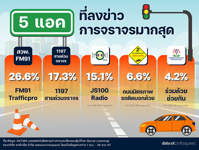 เพจ Facebook และแอคเคาท์ที่ลงข่าวการจราจรมากที่สุด 5 อันดับแรก