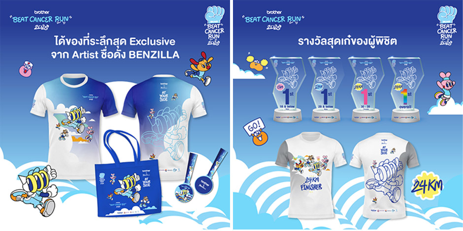 ด้าน นางสาวรัสสิญากร ตัณฑวิณิชย์ ผู้จัดการทั่วไปฝ่ายบริการลูกค้า บริษัท บราเดอร์ คอมเมอร์เชี่ยล (ประเทศไทย) จำกัด กล่าวว่า “ปีนี้กิจกรรม Brother Beat Cancer Run 2025 มีการแบ่งระยะทางวิ่งทั้งหมด 3 ประเภท ได้แก่ 6 กม. 12 กม. และ 24 กม. พร้อมจัดเต็มของที่ระลึก อาทิ เสื้อวิ่ง เหรียญรางวัล และเสื้อ Finisher สำหรับนักวิ่งระยะ 24 กม. ในขณะเดียวกันยังเปิดโอกาสให้ผู้ที่ไม่ได้เข้าร่วมวิ่งสามารถร่วมบริจาคเงินสมทบทุนผ่านบัญชีของบริษัทฯ เพื่อนำไปสนับสนุนการช่วยเหลือผู้ป่วยโรคมะเร็งได้เช่นกัน ตอกย้ำถึงความตั้งใจของบราเดอร์ที่ไม่เคยหยุดช่วยเหลือสังคม แม้ในช่วงสถานการณ์โควิด-19 ที่ผ่านมา บริษัทยังคงเดินหน้าจัดโครงการเพื่อช่วยเหลืออย่างต่อเนื่อง ดังนั้นกิจกรรม “Brother Beat Cancer Run 2025” ไม่เพียงเป็นงานวิ่งการกุศลเพื่อสุขภาพ แต่ยังสะท้อนถึงเจตนารมณ์ความมุ่งมั่นและวิสัยทัศน์ของบราเดอร์ ในการเป็นพลังขับเคลื่อนการเปลี่ยนแปลงเชิงบวกในสังคมไทย โดยมีเป้าหมายในการส่งเสริมสุขภาพที่ดีและความเท่าเทียมในชุมชนเพื่อเติบโตอย่างยั่งยืนไปด้วยกัน”