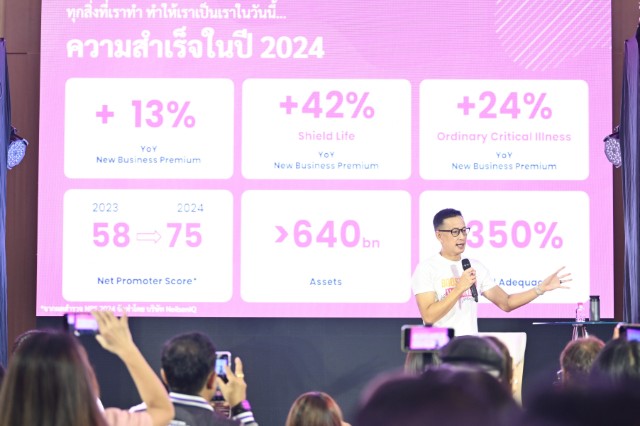 นายสาระ ล่ำซำ ประธานเจ้าหน้าที่บริหาร บริษัท เมืองไทยประกันชีวิต จำกัด (มหาชน) หรือ MTL เปิดเผยว่า “ในปี 2567 เมืองไทยประกันชีวิตได้เดินหน้าส่งมอบความสุขและรอยยิ้ม มุ่งตอบโจทย์ทุกความเป็นคุณ ในทุกช่วงของชีวิตอย่างไม่หยุดยั้ง พวกเราขอขอบคุณทุกความเชื่อมั่นและไว้วางใจจาก “ลูกค้าคนสำคัญ” ที่ทำให้ในปีที่ผ่านมาเมืองไทยประกันชีวิตมีการเติบโตอย่างแข็งแกร่ง โดยมีเบี้ยประกันภัยรับรวมกว่า 71,800 ล้านบาท เบี้ยประกันภัยรับใหม่เติบโต 13% ซึ่งเป็นการเติบโต ในกลุ่มสินค้าหลัก อาทิ Shield Life (ประกันชีวิตแบบตลอดชีพ ประกันชีวิตแบบภายในระยะเวลาและประกันชีวิตแบบยูนิเวอร์แซลไลฟ์) เติบโต 42% และแบบประกันคุ้มครอง โรคร้ายแรง (รายเดี่ยว) เติบโต 24% เป็นต้น ด้านคะแนน NPS (Net Promoter Score) สูงขึ้นจาก 58 คะแนน เป็น 75 คะแนน ขณะที่ธุรกิจในภูมิภาค CLMV ยังมีผลการดำเนินงานที่โดดเด่นอย่างต่อเนื่อง