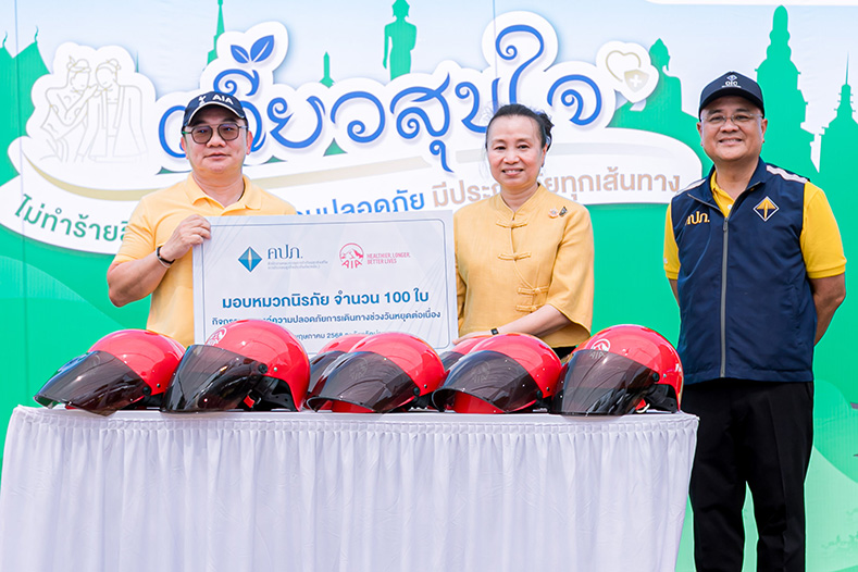 นอกจากนี้ เอไอเอยังร่วมสนับสนุนหมวกนิรภัยจำนวน 100 ใบ ให้แก่ประชาชนและเกษตรกรในพื้นที่ โดยมี นางวิไลวรรณ บุดาสา รองผู้ว่าราชการจังหวัดน่าน เป็นผู้รับมอบ และนายชูฉัตร ประมูลผล เลขาธิการคณะกรรมการกำกับและส่งเสริมการประกอบธุรกิจประกันภัย เป็นสักขีพยาน ผ่านกิจกรรมรณรงค์ความปลอดภัยการเดินทางช่วงวันหยุดต่อเนื่อง ประจำปี 2568 เพื่อสร้างความอุ่นใจในการเดินทางและยกระดับคุณภาพชีวิต ซึ่งกิจกรรมดังกล่าวสอดคล้องกับนโยบายด้านความยั่งยืน (ESG) มิติด้านสิ่งแวดล้อมและสังคม ที่พร้อมสนับสนุนให้ผู้คนและชุมชนได้มีสุขภาพและชีวิตที่ดีขึ้นตามคำมั่นสัญญา ‘Healthier, Longer, Better Lives – เพื่อสุขภาพและชีวิตที่ดีขึ้น’ ณ จังหวัดน่าน