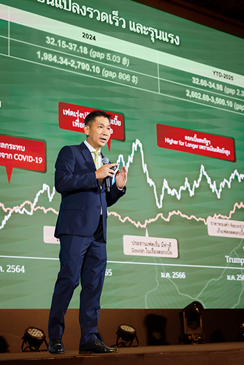 นอกจากนี้ภายในงานยังได้ฟังข้อมูลวิเคราะห์เจาะลึกในหัวข้อ “Global and Thai Economic Turbulence” โดยมีนายบุรินทร์ อดุลวัฒนะ กรรมการผู้จัดการและ Chief Economist บริษัท ศูนย์วิจัยกสิกรไทย จำกัด และ ดร.อาร์ม ตั้งนิรันดร ผู้อำนวยการศูนย์จีนศึกษา จุฬาลงกรณ์มหาวิทยาลัย ให้มุมมองถึงสถานการณ์สงครามการค้าจากนโยบายของสหรัฐอเมริการและจีน ที่ถึงแม้จะมีการเจรจาต่อรองกันออกไป 90 วัน แต่เป็นการพักรบเพื่อซื้อเวลา จึงเป็นช่วงที่ธุรกิจไทยควรเริ่มวางแผนกระจายความเสี่ยงตลาดใหม่ ที่ผ่านมาประเทศไทยขาดดุลการค้าเพราะนำเข้ามากกว่าส่งออก แต่ปีนี้มีความท้าทายกว่าเดิมเพราะขาดปัจจัยกระตุ้นเศรษฐกิจ ทั้งส่งออกติดลบและนักท่องเที่ยวต่างชาติหายไป ตอนนี้ SME ไทยอยู่ในเกมใหม่ ถ้าเอาความสำเร็จในเกมเดิมมาใช้ ก็จะอยู่ไม่ได้ นอกจากนี้ต้องปรับกลยุทธ์จากตั้งรับเป็นเชิงรุก สร้างโอกาสจากวิกฤต