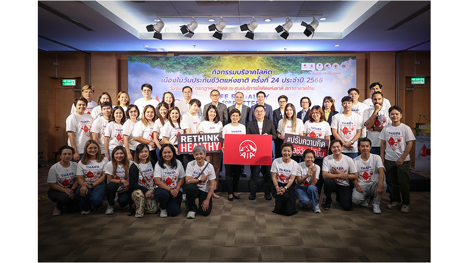 เอไอเอ ประเทศไทย นำโดย นายสุวิรัช พงศ์เสาวภาคย์ (ที่ 6 จากขวา แถวกลาง) ผู้อำนวยการฝ่ายกิจการภายนอก นำทีมพลังตัวแทนและเพื่อนพนักงานเอไอเอ จำนวนกว่า 60 คน ร่วมกิจกรรมบริจาคโลหิต เนื่องในวันประกันชีวิตแห่งชาติ ครั้งที่ 24 ประจำปี 2568 โดยได้รับเกียรติจาก นายชูฉัตร ประมูลผล เลขาธิการคณะกรรมการกํากับและส่งเสริมการประกอบธุรกิจประกันภัย (คปภ.) เป็นประธานในพิธี พร้อมกับร่วมถ่ายภาพเป็นที่ระลึก ณ สภากาชาดไทย ถนนอังรีดูนังต์ เมื่อวันจันทร์ที่ 7 กรกฎาคม ที่ผ่านมา