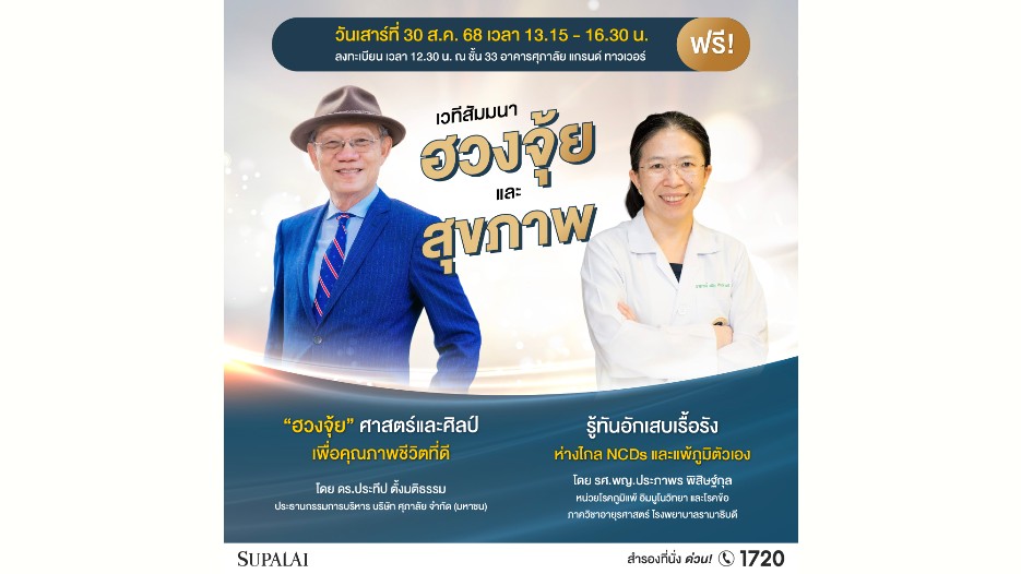 ชวนเติมความรู้ เปิดมุมมองใหม่ที่ใช้ได้จริงในชีวิตประจำวัน! กับหัวข้อ “ฮวงจุ้ย” ศาสตร์และศิลป์เพื่อคุณภาพชีวิตที่ดี โดย ดร.ประทีป ตั้งมติธรรม ประธานกรรมการบริหาร บริษัท ศุภาลัย จำกัด (มหาชน) ร่วมเปิดตำราฮวงจุ้ยแบบเข้าใจง่าย ถ่ายทอดความรู้เชิงลึกทั้งการเลือกบ้าน ทำเลที่ดี และการปรับปรุงที่อยู่อาศัยให้สอดคล้องกับหลักฮวงจุ้ยเชิงวิทยาศาสตร์ เพื่อสร้างสมดุล เสริมสุขภาพ จากประสบการณ์จริงนักพัฒนาอสังหาริมทรัพย์มืออาชีพ สู่การออกแบบบ้านที่เติมเต็มพลังบวก และหัวข้อ “รู้ทันอักเสบเรื้อรัง ห่างไกล NCDs และแพ้ภูมิตัวเอง” โดย รศ.พญ.ประภาพร พิสิษฐ์กุล หน่วยโรคภูมิแพ้ อิมมูโนวิทยา และโรคข้อ ภาควิชาอายุรศาสตร์ โรงพยาบาลรามาธิบดี ไขความลับของการอักเสบเรื้อรัง ภัยเงียบที่เป็นจุดเริ่มต้นของโรค NCDs และโรคภูมิคุ้มกันทำร้ายตนเอง เข้าใจสัญญาณเตือนร่างกาย ปรับพฤติกรรมก่อนสายเกินไป