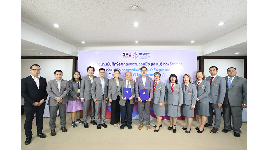 บริษัท กรุงเทพประกันชีวิต จำกัด (มหาชน) นำโดย นายจักรพงศ์ แสงแก้ว ผู้ช่วยผู้จัดการใหญ่ สายงานตัวแทนและที่ปรึกษาทางการเงิน (ที่ 8 จากซ้าย) ลงนามบันทึกข้อตกลงความร่วมมือ (MOU) ทางวิชาการกับ มหาวิทยาลัยศรีปทุม วิทยาเขตชลบุรี โดย ผู้ช่วยศาสตราจารย์ ดร.สุเทพ อุสาหะ ผู้ช่วยอธิการบดี มหาวิทยาลัยศรีปทุม วิทยาเขตชลบุรี (ที่ 7 จากซ้าย) ในโครงการ Mini MBA Certified BLA & SPUC Leader 2025: Entrepreneurial Leaders of the New Era Transform Your Leadership, Transform Your Future โดยมีผู้บริหารฝ่ายขายระดับสูง ภาคตะวันออก ร่วมเป็นสักขีพยาน ซึ่งการลงนามบันทึกข้อตกลงในครั้งนี้ จัดทำขึ้นเพื่อพัฒนาศักยภาพผู้บริหารตัวแทนให้มีทักษะเชิงผู้ประกอบการ ตลอดจนการเสริมสร้างองค์ความรู้ด้านการบริหารธุรกิจและภาวะผู้นำ สร้างแนวคิดเชิงนวัตกรรมและการบริหารจัดการอย่างยั่งยืน โดยมุ่งเน้นความสำคัญของการพัฒนาทักษะเชิงผู้ประกอบการ ภาวะผู้นำ และการใช้เทคโนโลยี AI ในการเสริมสร้างศักยภาพผู้บริหารตัวแทนให้เป็นเจ้าของกิจการที่สามารถขับเคลื่อนธุรกิจประกันชีวิตได้อย่างยั่งยืน ณ  มหาวิทยาลัยศรีปทุม วิทยาเขตชลบุรี เมื่อเร็วๆ นี้