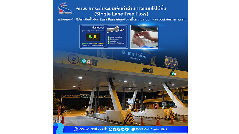 กทพ. ยกระดับระบบเก็บค่าผ่านทางแบบไร้ไม้กั้น (Single Lane Free Flow) พร้อมแนะนำผู้ใช้ทางติดตั้งบัตร Easy Pass ให้ถูกต้อง เพื่อความสะดวก และรวดเร็วในการผ่านทาง
