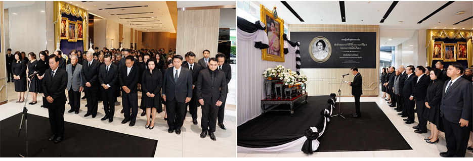 ในการนี้ นายสมใจนึก เองตระกูล ได้กล่าวถวายความอาลัย ขอน้อมรำลึกในพระมหากรุณาธิคุณอันหาที่สุดมิได้ ภายในพิธีมีการยืนสงบนิ่งเป็นเวลา 1 นาที เพื่อแสดงความอาลัยอย่างสุดซึ้ง คณะผู้บริหารและพนักงานร่วมลงนามถวายความอาลัย บรรยากาศเป็นไปด้วยความสงบและเปี่ยมด้วยความจงรักภักดี