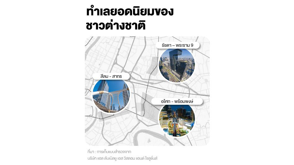 นายประพันธ์ศักดิ์ รักษ์ไชยวรรณ กรรมการผู้จัดการ บริษัท แอล ดับเบิลยู เอส วิสดอม แอนด์ โซลูชั่นส์ จำกัด บริษัทวิจัยและพัฒนาอสังหาริมทรัพย์ ในเครือบริษัท แอล.พี.เอ็น.ดีเวลลอปเมนท์ จำกัด (มหาชน) เปิดเผย ผลสำรวจความต้องการที่อยู่อาศัยของชาวต่างชาติในพื้นที่กรุงเทพมหานคร ระหว่างเดือนมกราคม – เมษายน 2568 จากจำนวนผู้ตอบแบบสอบถามที่เป็นชาวต่างชาติทั้งหมด 446 คน โดยการส่งแบบสอบถามทางออนไลน์ และการลงพื้นที่สำรวจในพื้นที่สุขุมวิท พร้อมพงษ์ และสาทร โดยเจาะกลุ่มนักธุรกิจ และคนที่เข้ามาทำงานในประเทศไทย พบว่า ผู้ตอบแบบสอบถามให้ความสนใจที่จะอยู่อาศัยในพื้นที่ในเมืองที่เดินทางสะดวกใกล้แนวรถไฟฟ้าทั้ง BTS และ MRT ใกล้สถานที่ทำงาน และมีสิ่งอำนวยความสะดวกพื้นฐานครบถ้วน เช่น ร้านอาหาร ศูนย์การค้า และโรงพยาบาล โดย 3 ทำเลแรกที่ผู้ตอบแบบสอบถามชาวต่างชาติ นิยมเลือกที่จะซื้อ หรือเช่า ได้แก่ อโศก-พร้อมพงษ์, รัชดา-พระราม 9 และสีลม-สาทร โดยทั้ง 3 ทำเลต่างมีจุดร่วมที่สำคัญ คือการเป็นศูนย์กลางของไลฟ์สไตล์คนเมืองพร้อมอัตลักษณ์เฉพาะตัวที่ตอบโจทย์ความต้องการของชาวต่างชาติได้อย่างดี