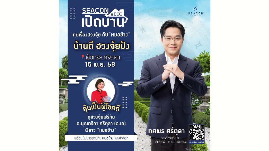 ซีคอน (SEACON) ผู้นำด้านการสร้างบ้านครบวงจร เตรียมจัดกิจกรรมพิเศษ “SEACON เปิดบ้าน @EEC บ้านดี ฮวงจุ้ยปัง” ในวันเสาร์ที่ 15 พฤศจิกายน 2568 ที่ศูนย์การค้า เซ็นทรัล ศรีราชา เพื่อสร้างการรับรู้และเข้าถึงกลุ่มลูกค้าในพื้นที่เขตพัฒนาพิเศษภาคตะวันออก (EEC) พร้อมส่งมอบประสบการณ์ใหม่ในการ “เปิดบ้าน” อย่างอบอุ่นเป็นกันเอง และเต็มไปด้วยสาระจากผู้เชี่ยวชาญตัวจริง