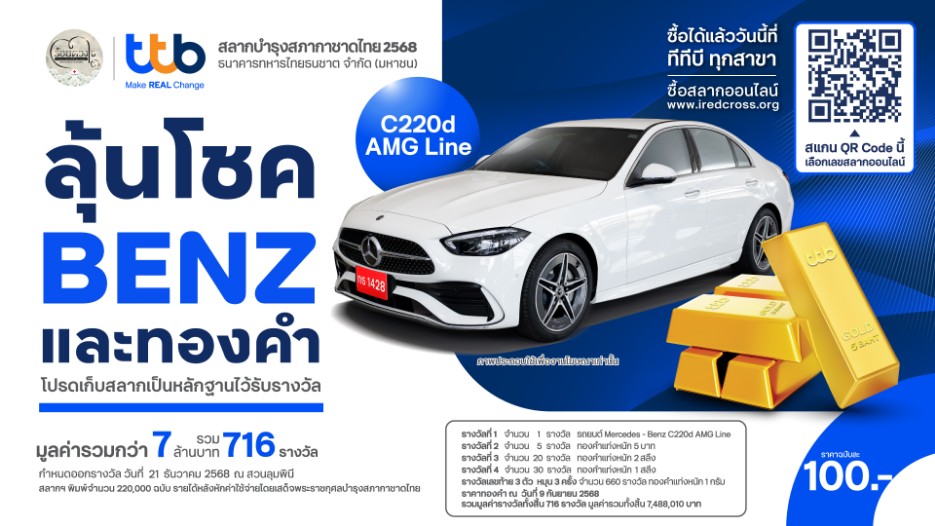 ซื้อสลากกาชาดทีทีบีออนไลน์ ปี 2568 ลุ้นโชคใหญ่ 716 รางวัล รวมมูลค่ากว่า 7 ล้านบาท พิเศษ “ถูกรางวัล ไม่ต้องเสียภาษี”