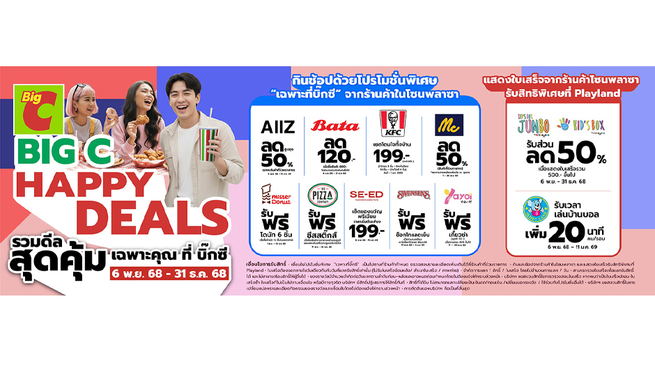 บิ๊กซี ส่งท้ายปีด้วย “Happy Deals” แคมเปญรวมดีลสุดคุ้มจากร้านค้าชั้นนำ ทั้งกิน–เที่ยว-ช้อป ในที่เดียว