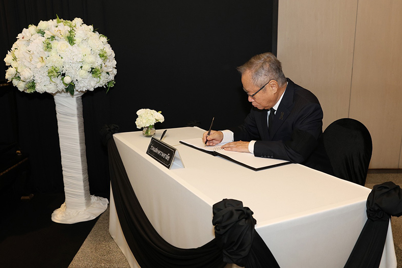 โอกาสนี้ นายชัย โสภณพนิช นำพวงมาลัยถวายพานแท่นสักการะและลงนามแสดงความอาลัยเบื้องหน้าพระฉายาลักษณ์ พร้อมคณะผู้บริหารและพนักงานร่วมแสดงความอาลัยและยืนสงบนิ่งเป็นเวลา 1 นาที ณ อาคารกรุงเทพประกันภัย สำนักงานใหญ่ ถนนสาทรใต้ เมื่อวันที่ 14 พฤศจิกายน 2568