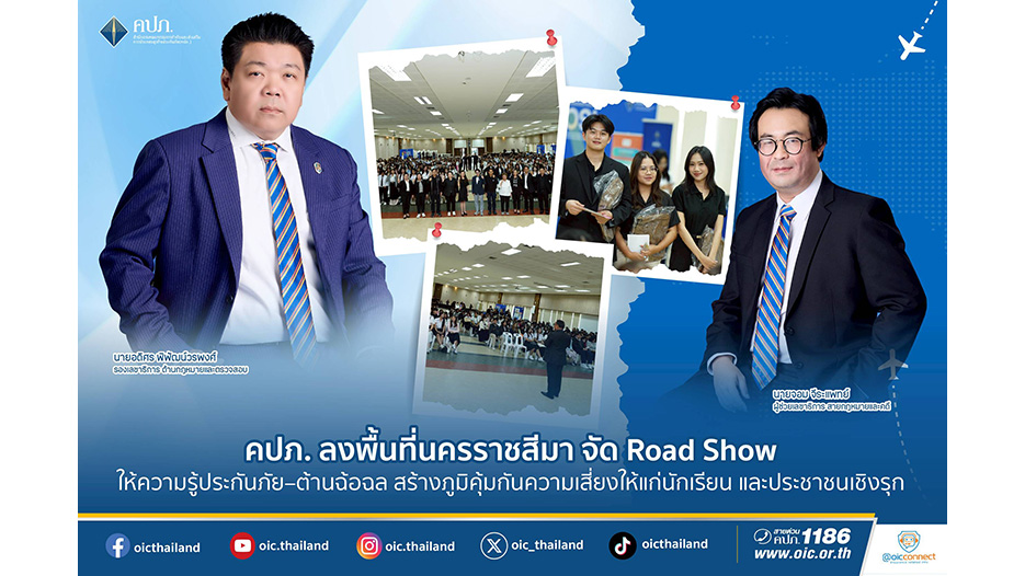 คปภ. ลงพื้นที่นครราชสีมา จัด Road Show ให้ความรู้ประกันภัย–ต้านฉ้อฉล สร้างภูมิคุ้มกันความเสี่ยงให้แก่นักเรียน และประชาชนเชิงรุก