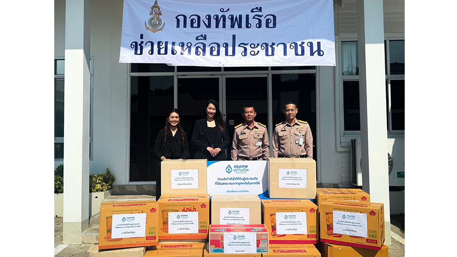 กรุงเทพประกันชีวิต เดินหน้าสานต่อพันธกิจองค์กร ส่งมอบความใส่ใจ และห่วงใยแก่ผู้ได้รับผลกระทบจากอุทกภัยครั้งใหญ่ในภาคใต้ โดยตัวแทนคณะผู้บริหาร นางสาวศริฐณี ศิริสมบูรณ์ ผู้จัดการอาวุโส ส่วนงานประชาสัมพันธ์และกิจกรรมเพื่อสังคม (ที่ 2 จากซ้าย) ได้ส่งมอบสิ่งของอำนวยความสะดวกต่อการดำรงชีวิต ให้แก่กรมกิจการพลเรือนทหารเรือ ได้แก่ บะหมี่กึ่งสำเร็จรูป อาหารพร้อมทาน อาหารกระป๋อง และเครื่องอุปโภค อาทิ ผ้าอนามัย ผ้าอ้อมสำหรับเด็ก ผ้าอ้อมสำหรับผู้ใหญ่ เพื่อส่งต่อไปยังประชาชนผู้ที่ได้รับผลกระทบ ใน อำเภอหาดใหญ่ จังหวัดสงขลา เพื่อการช่วยเหลือได้อย่างทันท่วงที โดยมี พลเรือตรี ปนิธาน สิทธิโยธาคาร (ที่ 2 จากขวา) รองเจ้ากรมกิจการพลเรือนทหารเรือ เป็นผู้รับมอบ ณ กรมกิจการพลเรือน ทหารเรือ เมื่อเร็วๆ นี้